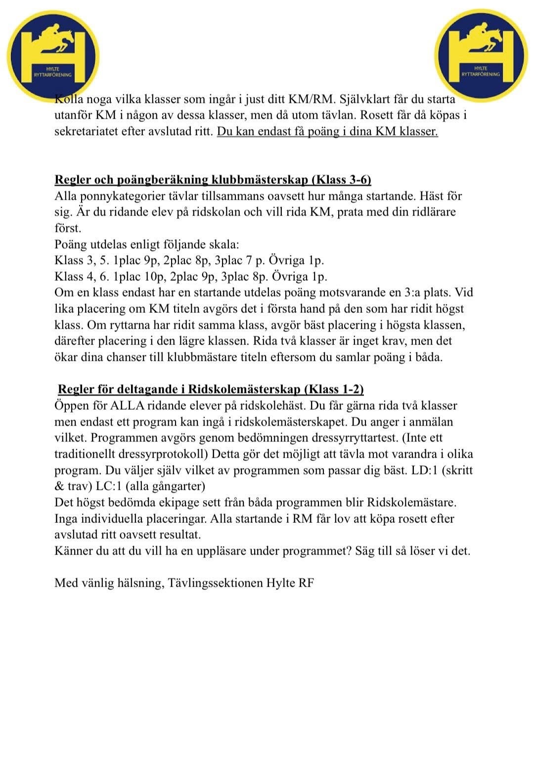Välkomna till KM/RM Dressyr 14/5-2026. Se info i bifogade bilder. OBS rätt år ska vara 2026 :).